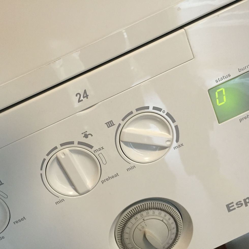 - Airing cupboard houses new Ideal Esprit Combination boiler (with wireless thermostat)